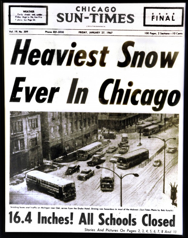 The blizzard of 1967 is still the largest single snow event in chicago history.